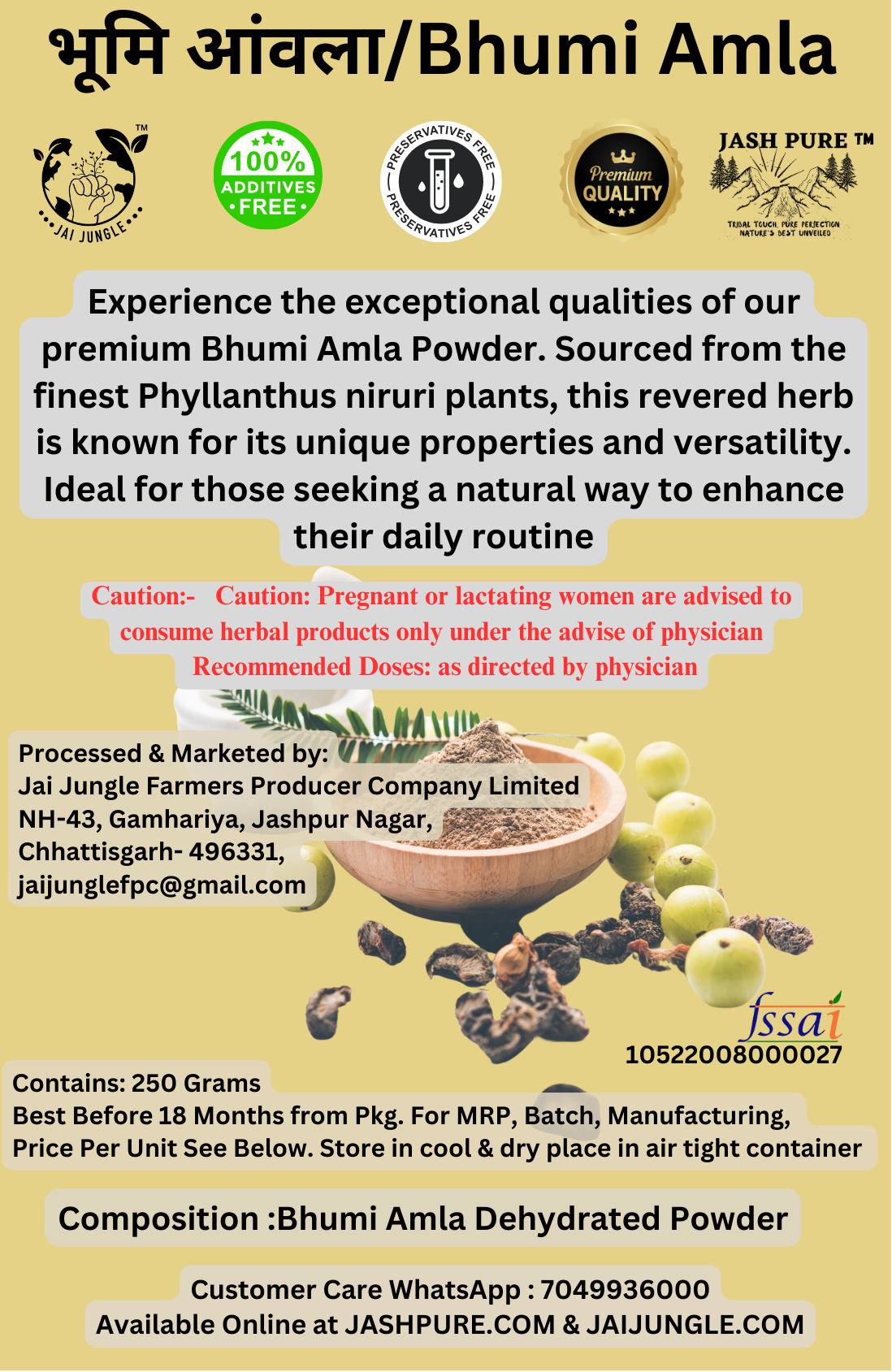 Clean label: 100% Bhumi Amla Powder, free from additives.