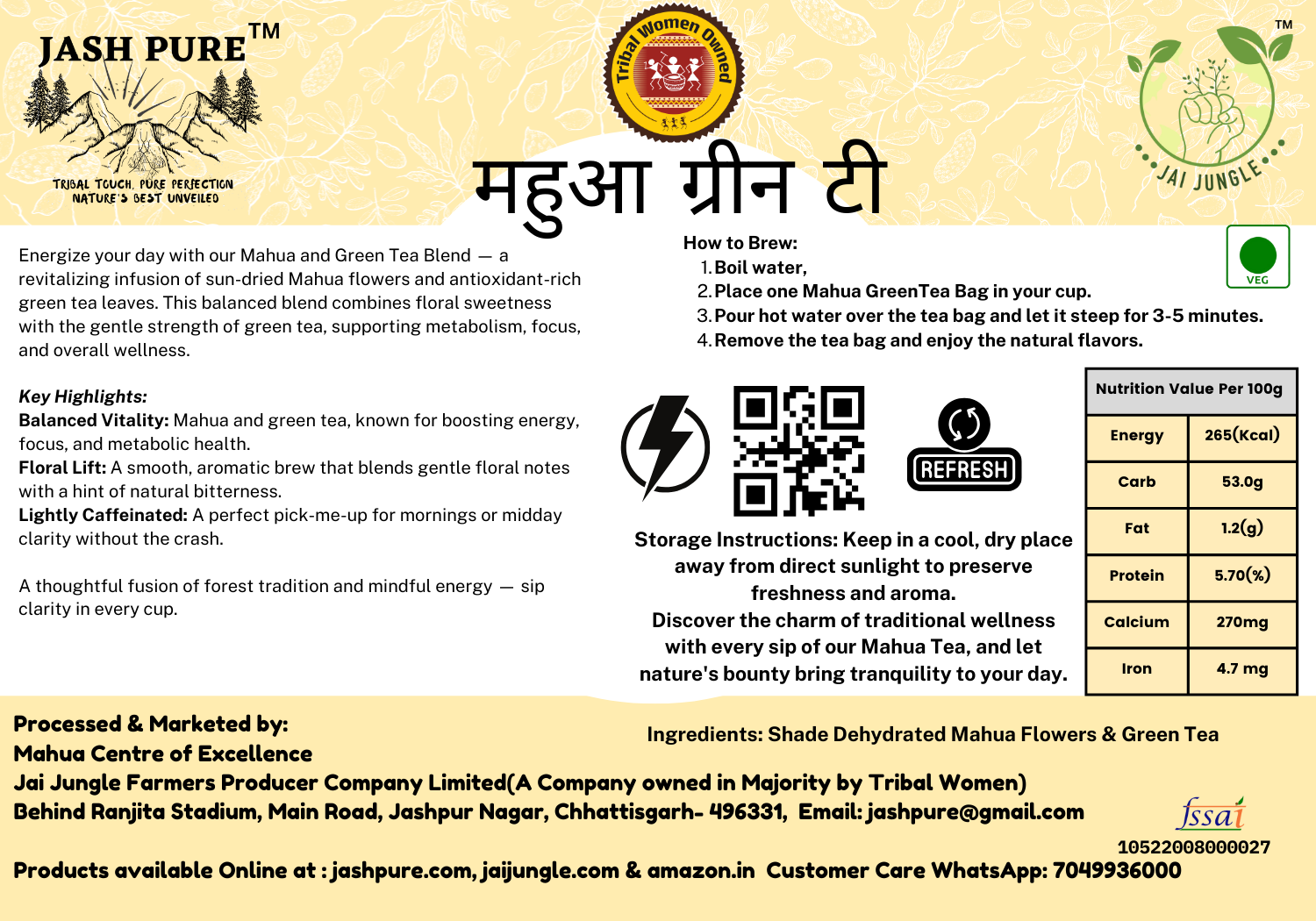 Ingredients: Shade-dehydrated Mahua flowers + premium green tea.