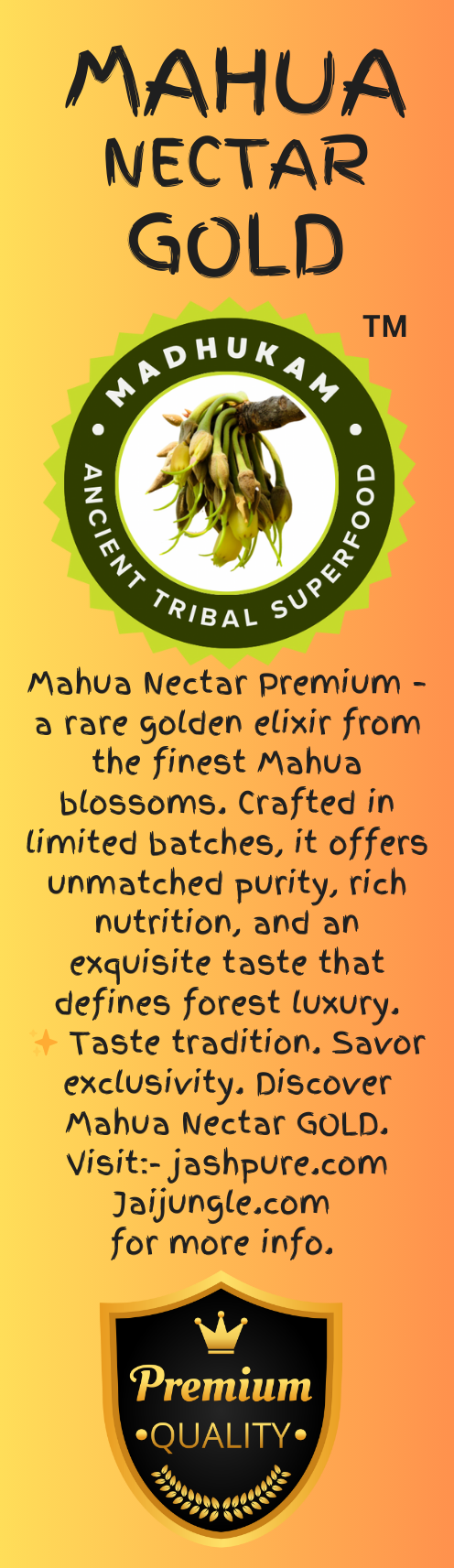 Mahua Nectar Gold is a rare golden elixir made from the finest handpicked Mahua blossoms, crafted in limited batches for unmatched purity and exclusivity. Unlike common sweeteners, this premium edition offers a perfect balance of natural sweetness, energy, and superior nutrition, making it an ideal functional superfood.
